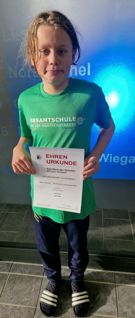 Im Schwimmen vertrat Marwin Schledorn unsere Schule in drei Einzelstarts über 50 Meter und erreichte unter anderem einen hervorragenden 3. Platz in der Disziplin Rücken.